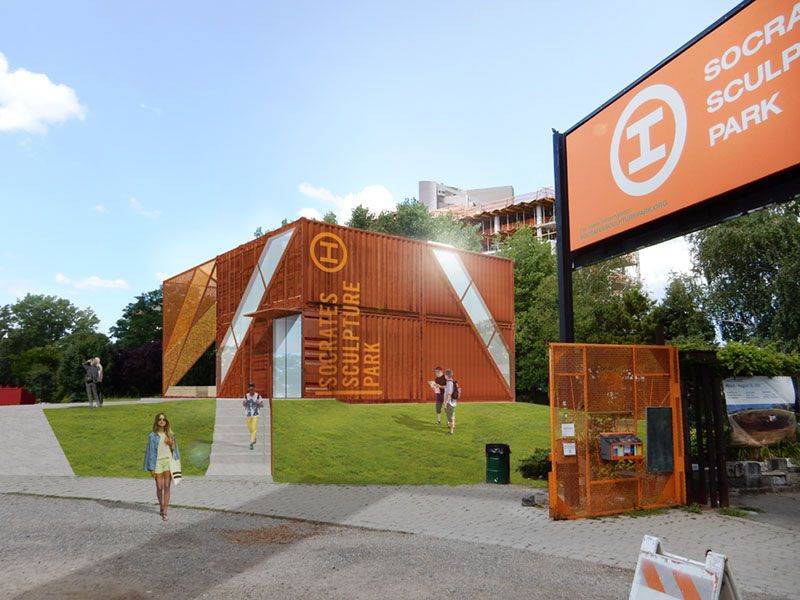 When it is constructed, the Cubes Building will house the administration and programming facilities for Socrates Sculpture Park in Astoria. Comprised of 18 shipping containers, the structure originally began as a commission by The Whitney Museum of Art, and has since been donated to the park; it is the first permanent fixture in Socrates’ 30 year history.
