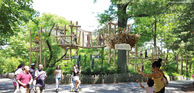 The Bronx Zoo will soon be home to another attraction: The forthcoming Treetop Adventure Zipline will allow visitors to zip 45-feet above the Bronx River and its surrounding forest. A second component, called Nature Trek, includes a 14-foot-high netted course, featuring 12 enclosed bridges, narrows beams, vertical obstacles and wiggling surfaces, in addition to a ground-level activity zone designed for kids.