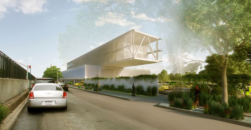 The expanded Woodside Office, Garage and Inspection Facility will serve as a central inspection location for over 13,500 taxis with an increased inspection capacity of more than 200 cars per day. Spanning over the existing eight-lane garage, this sleek, louver-screened structure seeks to reduce congestion and queuing times thanks to the addition of new traffic lanes.
