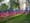 A speaker’s podium and seats occupied the landing in front of the memorial: