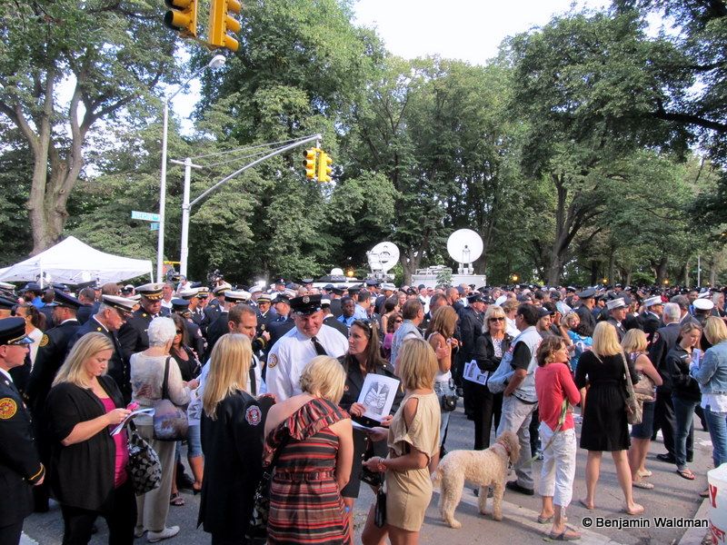 According to CBS, thousands of firefighters and their families paid their respects at the memorial this morning: