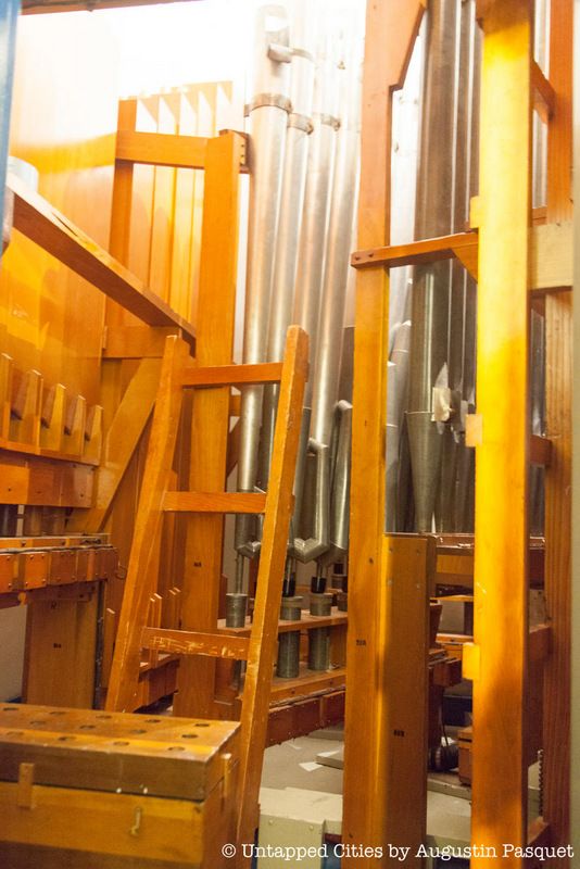 Since the one-ton organ spans from the basement to the 6th floor, it cannot be moved for renovation. So it will stay in exactly the same place. To prepare it for the building’s renovation, the Wurlitzer’s console will just be brought down its elevator into the basement and pushed back. It only has to be protected from the construction, particularly the dust that will accrue from all the work (dust is the worst enemy of the organ pipes).