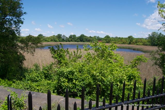 Baisley Pond itself is a modestly beautiful stretch of nature that was once a collecting pond for the Brooklyn City water supply. Surrounding streams collected groundwater runoff and fed into this low lying pond, which was then transported by pipes and pumping stations back to Ridgewood. This was the first collecting pond dredged by the Nassau Water Company, in which the city of Brooklyn owned a large share, in 1858. In the succeeding decades more and more were built, each further east than the last. On tours, NYC H2O sometimes travels as far out as Hempstead Lake in Nassau County, once part of the system. As Brooklyn’s system failed and was eventually replaced by the NYC water supply system, many of these sites sat unused for decades, before a young Robert Moses discovered he could easily link them together as parks–but that’s a story for another day (Robert Caro speaks a lot to this in his amazing The Power Broker