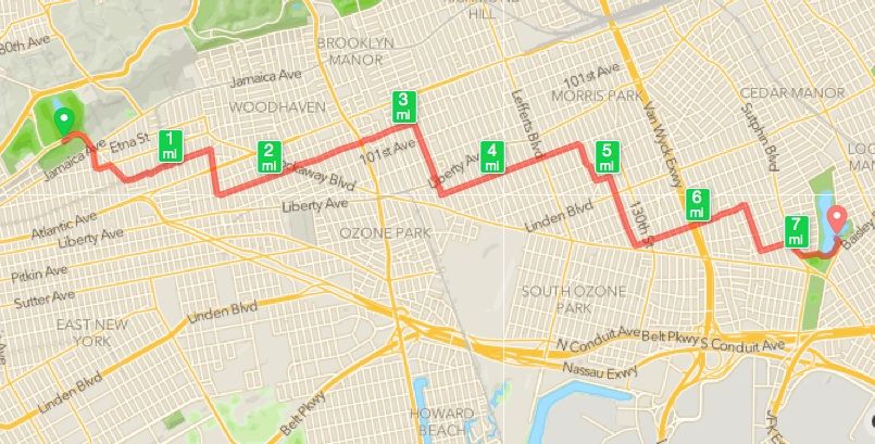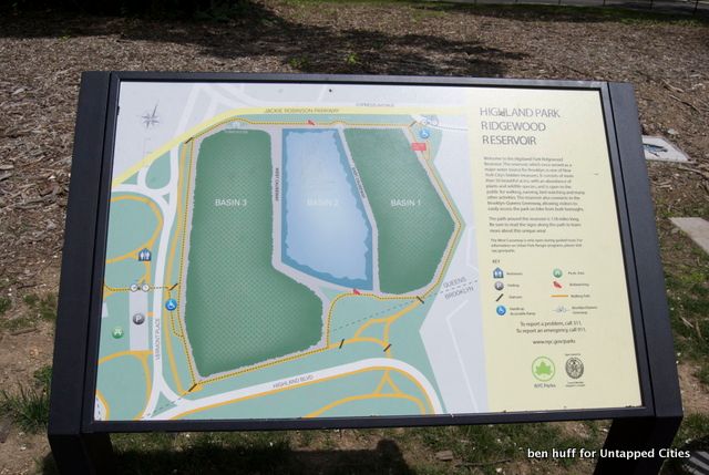 We met on a sunny Saturday just across the street from Highland Park on the border of Cypress Hills. Heading up Highland Boulevard, we came upon the first stop of the tour, Ridgewood Reservoir. While an aerial of the location makes it area look like just an extension of the park, an up-close view reveals this is actually reclaimed green space from a former man-made reservoir.