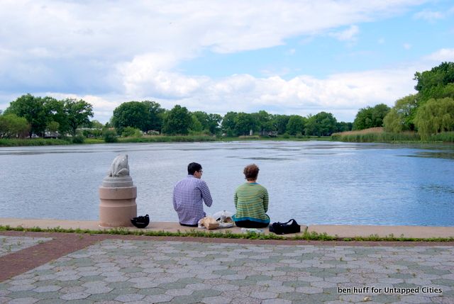 We rode our bikes around a newly-installed walking path that allows you to explore around each basin. Some of the original structures, including this gatehouse from the late 1800’s, line the path. Plans for their future are unclear, but there is an effort by local community groups to rehabilitate them to environmental education centers.