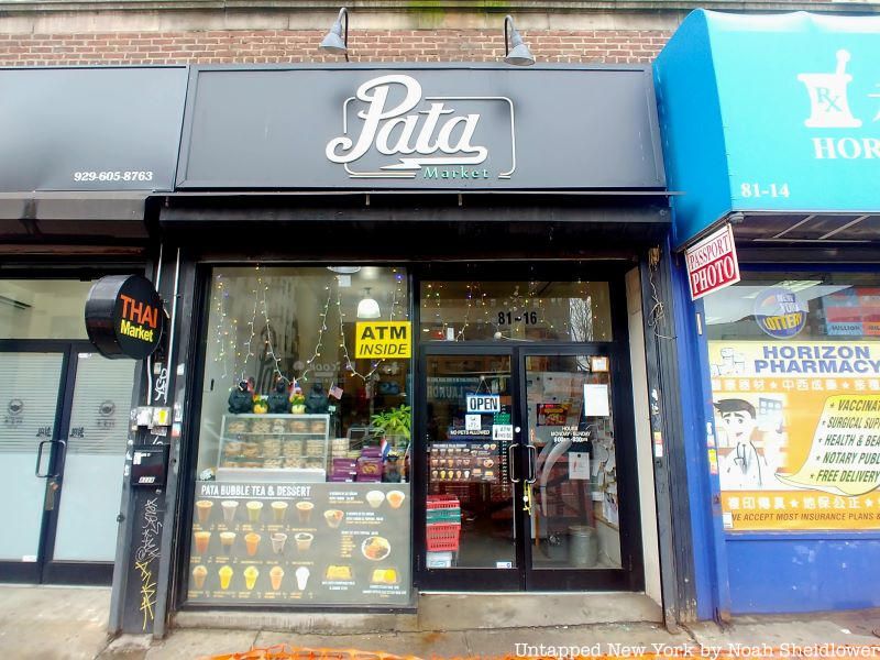 Pata Market is perhaps the main Thai grocery store in Elmhurst, offering all sorts of fresh produce, imported snacks, and desserts. The market is filled to the brim with Thai goods, from juices to canned foods to dozens of chips. The market’s interior is bright and somewhat spacious, with white walls and a small display of the market’s logo in black.