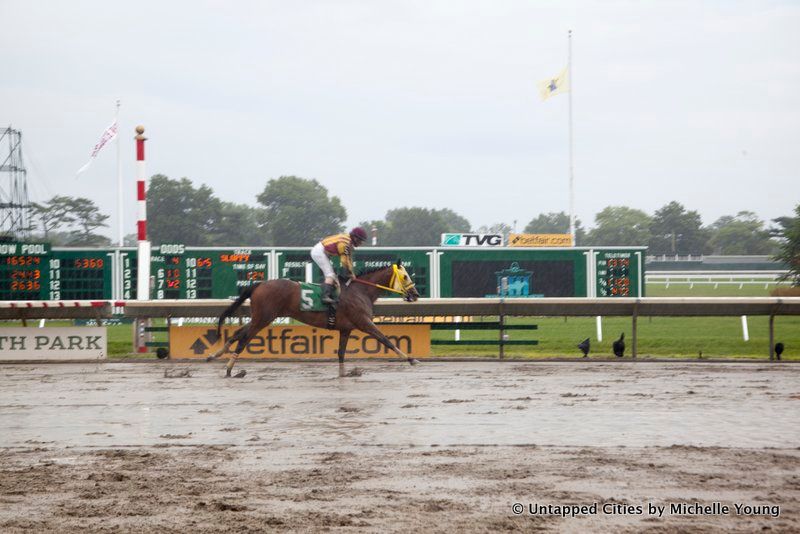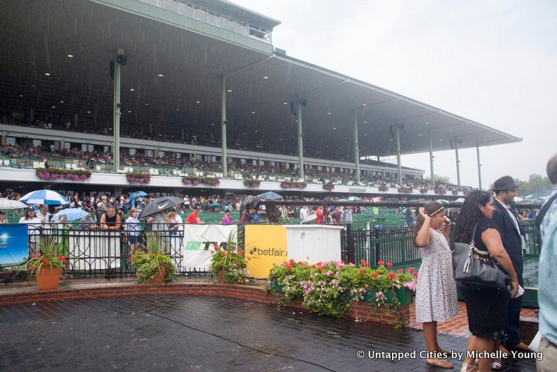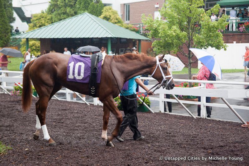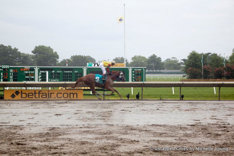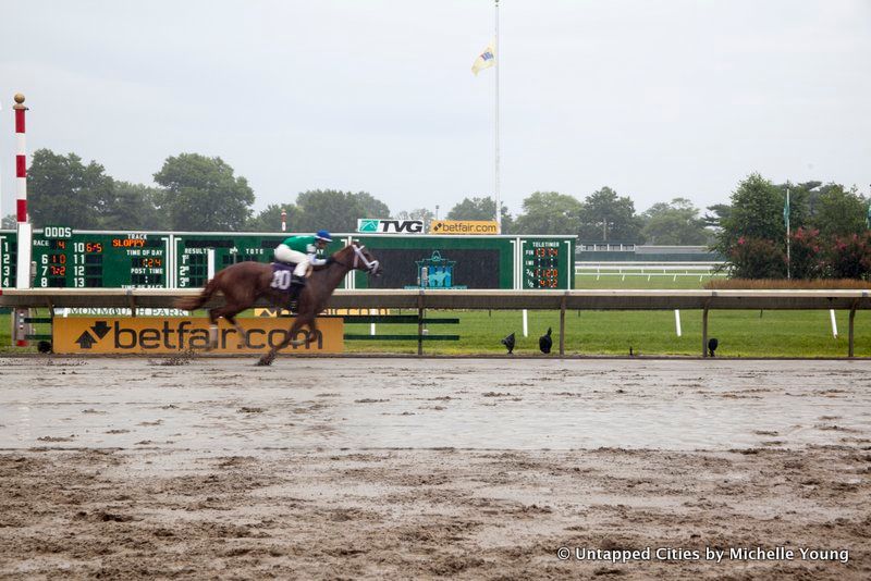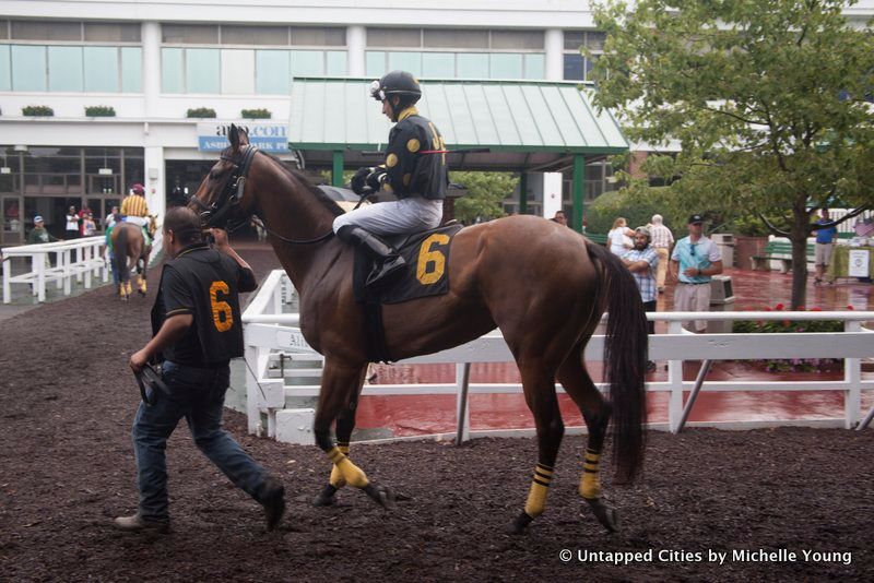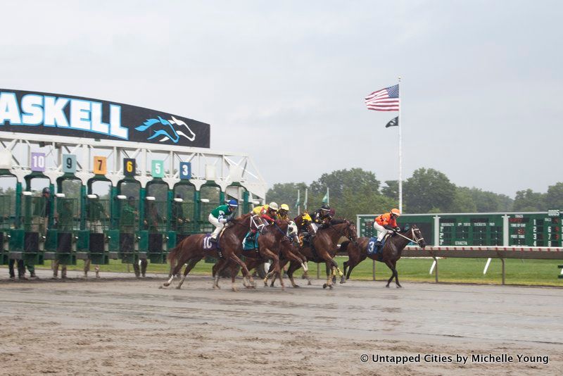 Amidst the country fair atmosphere at today’s thoroughbred horse races, it can be easy to forget the sheer amount of history at the country’s racetracks. Many of them are an easy trip on public transit from New York City, including Belmont Track, home of the Belmont Stakes, and Monmouth Park, on the Jersey shore. On Sunday, we made the 90 tminute train ride to Monmouth Park to catch the Haskell Invitational, a $1 million purse featuring the the Exaggerator, the horse than won the Preakness this year and Nyquist, this year’s Kentucky Derby winner.