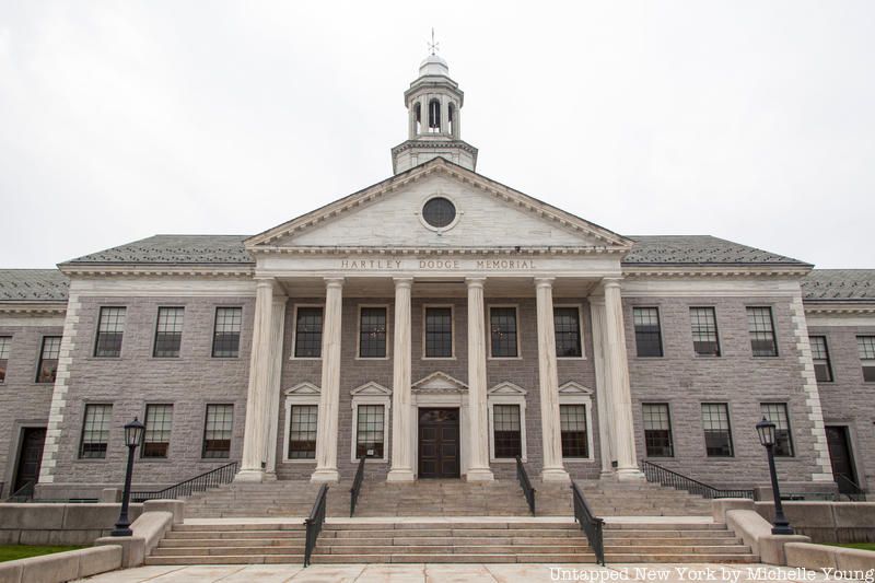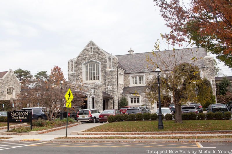 Madison, New Jersey is worth a larger visit as well, beyond the Hartley Dodge Memorial Building. Named the #1 place to live in New Jersey by NJ Monthly, and dubbed “A town straight out of central casting” by The New York Times, Madison is a college town with a quaint main street, diverse population thanks to the two colleges Drew University and Fairleigh Dickinson University’s College at Florham, and stunning architecture. Its NJ transit train station looks like a Gilded Age estate, designed by the company architect of what was then the Delaware, Lackawanna and Western Railroad. Listed on the National Register for Historic Places, the collegiate Gothic train station built of Gneise stone and oak interiors has a grand hall and Guastavino tiling in the entrance.