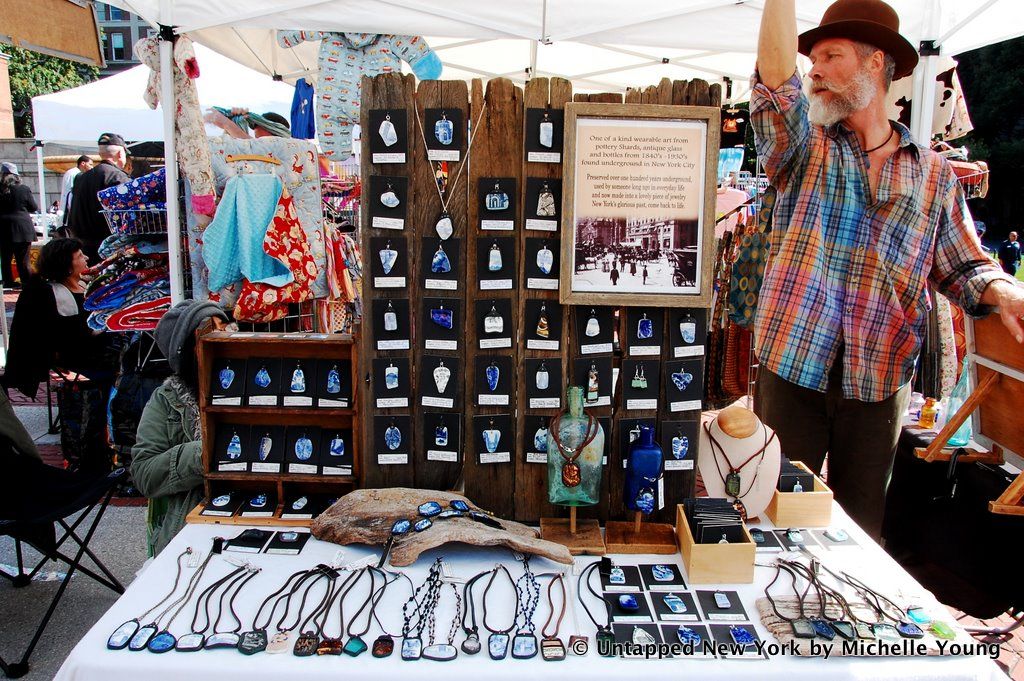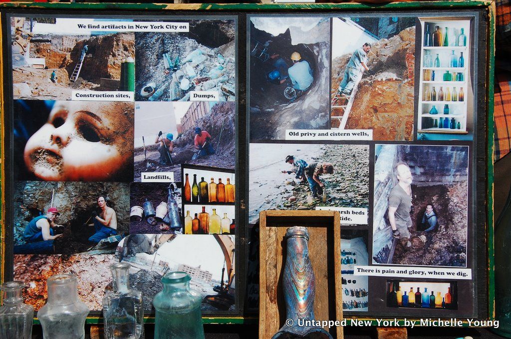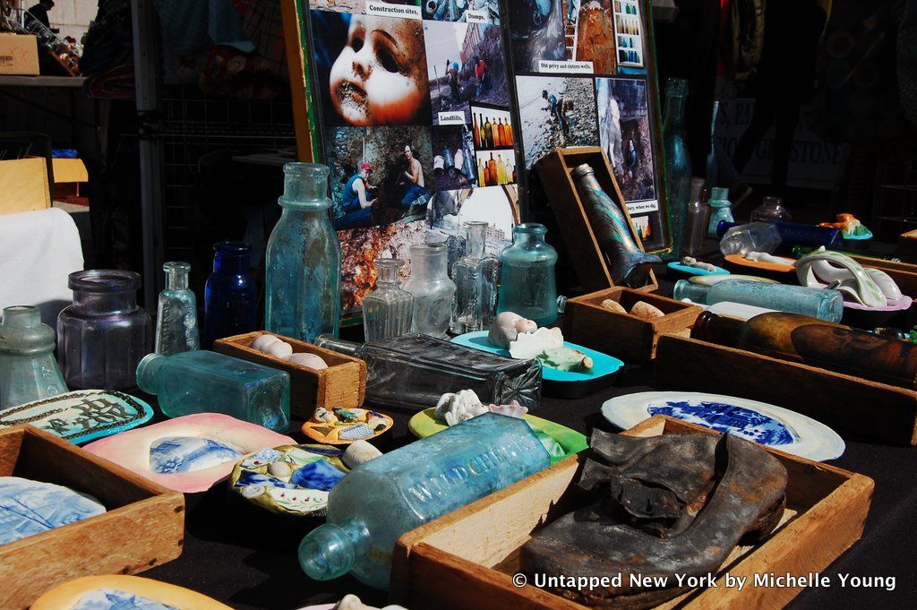 I met Scott Jordan at the Columbia University flea market. He calls himself a “digger,” and he looks for urban artifacts on lots set for redevelopment, in old wells and in landfills. His stand caught my eye amidst the other generic stalls because it made a connection between consumerism and the city around us. Turn an object upside down and he has written about where it came from. On his website he writes, “For over 20 years, I have turned the discards of New York City into artifact art which expresses my passion for Gotham’s history.”