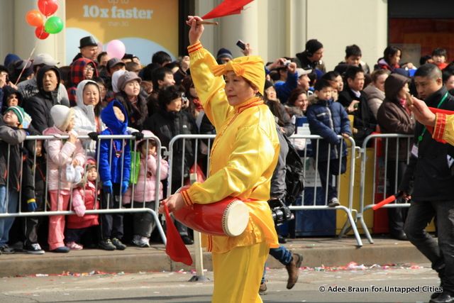 “I see John Liu!” announced a kindergarten aged boy to his mother as the Chinese-American New York City Comptroller, and Flushing native, walked by with a small entourage carrying signs of his smiling face. “Happy New Year!” shouted out Mr. Liu as he waved to the crowd. “Happy New Year!” they all shouted back. He was quickly drowned out by the low collective drumming of the local chapter of the Self Help Innovative Senior Center who were on his heels. There was no time for dawdling. This was the Lunar New Year parade in Flushing’s Chinatown. And everyone wanted a piece of the moon pie.