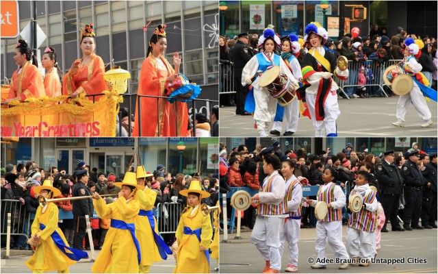 By half past eleven on the sunny Saturday in mid-February in downtown Flushing, several local groups and associations had already made their way down Main Street carrying banners and wearing stoic expressions. This year’s parade was Flushing’s 17th and its most diverse with many non-Asian participants. The ladies of the Golf Association of Great New York wore striking floor-length satin pink dresses. A float sauntered past carrying mayoral hopeful He Gin Lee. But it wasn’t until the steady synth thumping of a familiar beat coming from a distant float that the parade really got started. The float contained a half-dozen Psy impersonators, dancing Gangnam Style all over the Murray Hill Merchant Association float like egg on a bowl of bibimbap, as Stephen Colbert would say. It may be popularly known as Chinese New Year, but the Koreans, who also share the Lunar calendar, were not going to be upstaged, not this year.