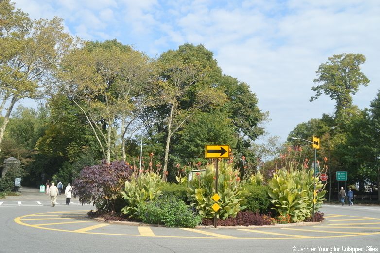 The entrance to Fort Tryon Park, with the cottage tucked just out of view on the left-hand side.