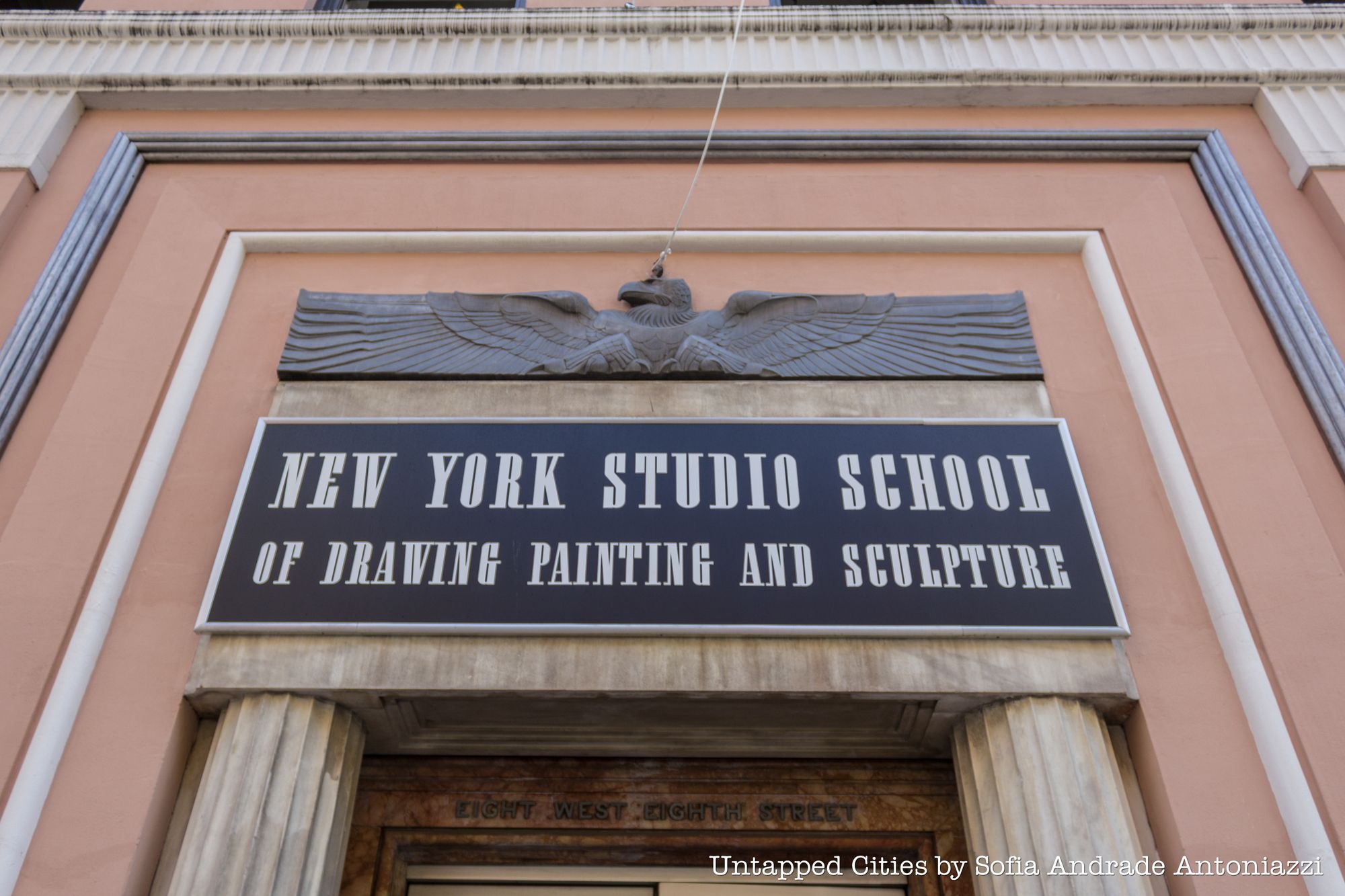This weekend, the city’s art aficionados were treated to an unexpected visit from the past. The original facade of the West 8th Street location of Whitney Museum was visible for just a few days while the building’s current tenant, the New York Studio School of Drawing, Painting, and Sculpture, refurbishes its own sign that hung over the door. In a week, the Studio School’s sign will return, and the Whitney Museum engraving that has not been seen for 48 years will disappear once more.