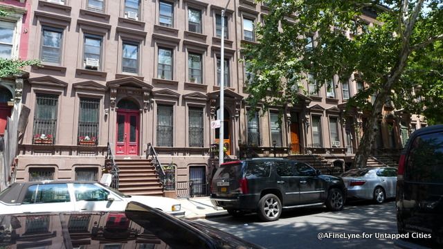 The 28 Astor Row Houses occupy the south side of the street between Lenox Avenue and Fifth Avenue, while the north side of the street has the traditional townhouses pictured below. You can visit Astor Row easily by taking the #2/3 to Lenox Avenue and 125th Street, and taking a pleasant five block walk North, past Red Rooster, Sylvia’s and Maysles Cinema.