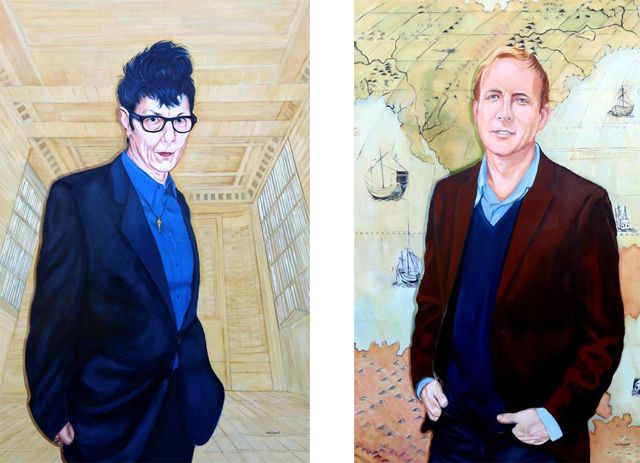 (Left) Elizabeth Streb 2014, Oil on Linen, 60″ x 40″ (Right) Reif Larsen 2014, Oil on Linen, 60″ x 40″ These paintings are part of the exhibition- Six in the City at the SOMA New Art Gallery