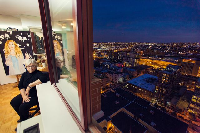Sandra Bloodworth in her apartment where she has carved out a studio space to work. Photo: Frank Weiss