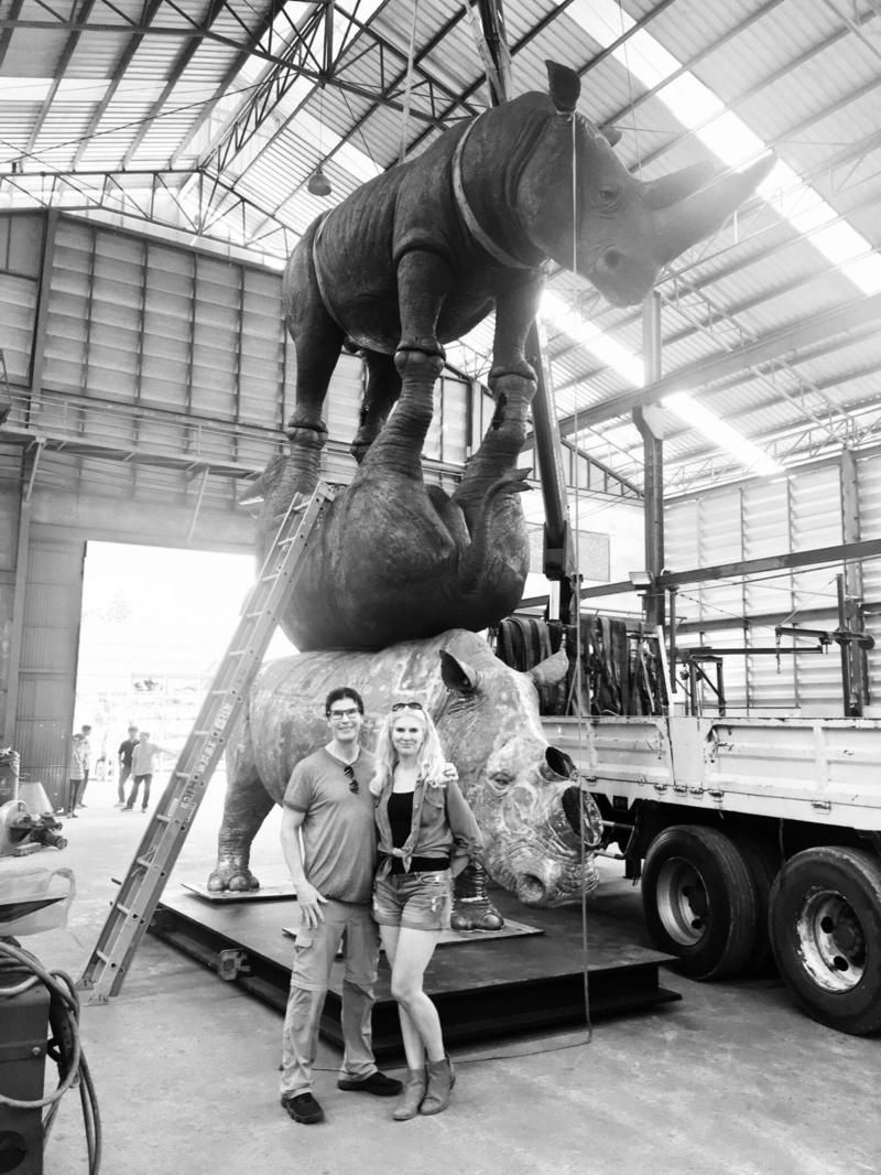 After years of false belief in their medicinal benefits, the horns of Northern White Rhinos are worth more than gold and have caused these rare animals to be pushed to the brink of extinction. There are now only three Northern White Rhinos left in the world, and they aren’t able to reproduce. Gillie and Marc’s life-size, bronze statue, which will stand 17-feet-high when constructed, is a recreation of this final family: a male, Sudan, and two females, Najin and Fatu, who all live in the Ol Pejeta Conservancy in Laikipia, Kenya.