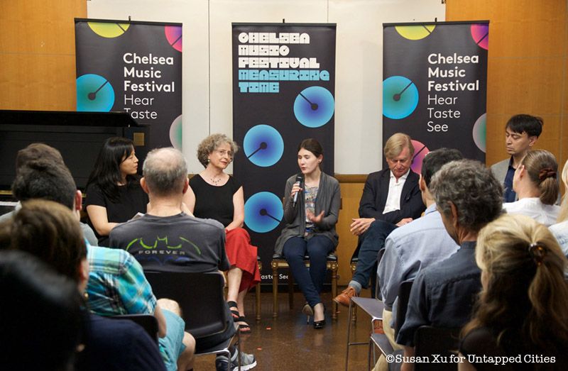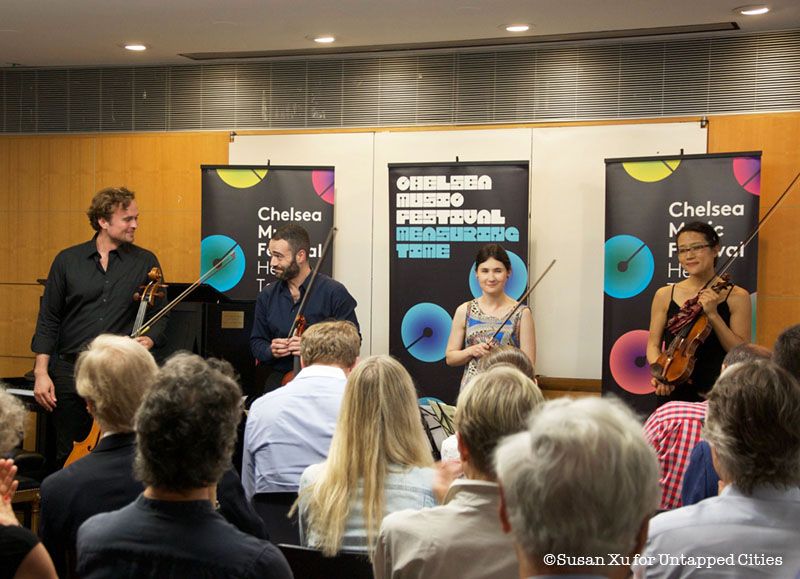 The building has since been restored to its original 1821 plan, but the interior is modern, with a staircase leading up to an additional floor. As a venue for the Chelsea Music Festival, the space can only be described as cozy and quaint: the open room upstairs was transformed into an art gallery, filled with a collection of photographs and other works that revolved around the theme of time. The performance itself took place on its main floor, where chairs were arranged around a dedicated performance area. Very much like the rest of the space, the entire event was intensely intimate, allowing the audience to directly interact with each other and the performers.