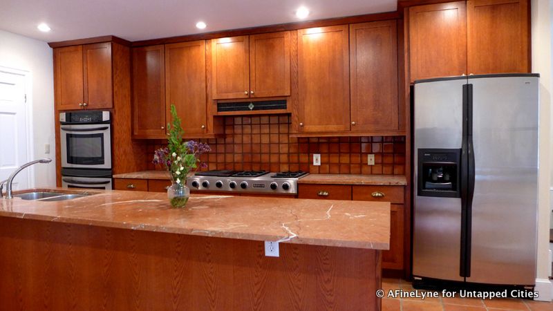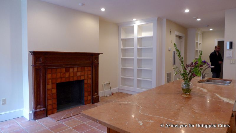 As in most Harlem townhouses, the kitchen was on the garden level, with a wet bar on the parlor floor for convenience. A dumb-waiter connecting the two, with a decorative fireplace in the kitchen area. The garden level rooms were incredibly bright and the garden still had waste-level planters that probably once held herbs.