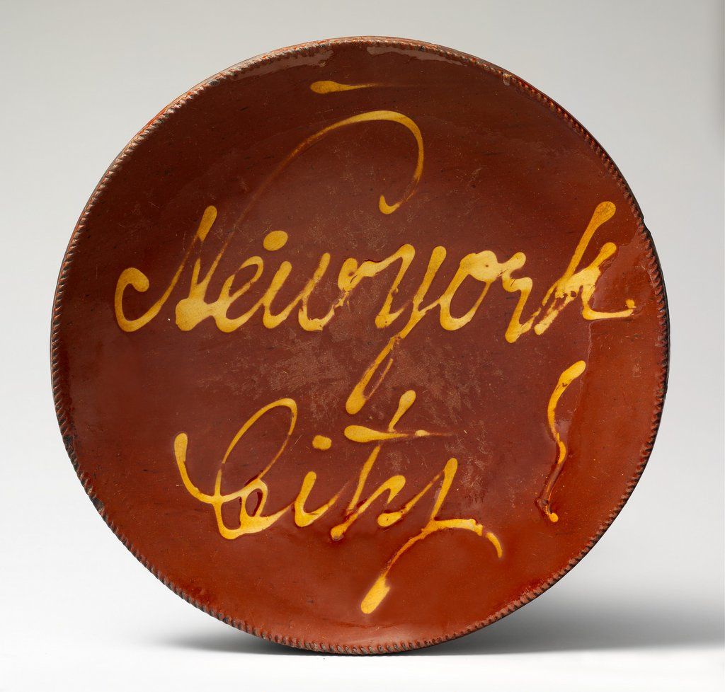 In the collection of the Metropolitan Museum of Art is a slip-script dish made in Norwalk that likely shows this industry’s great interest within this market, reading, “New York City,” which is attributed to Asa Edward Smith (1798-1880). Image in public domain.