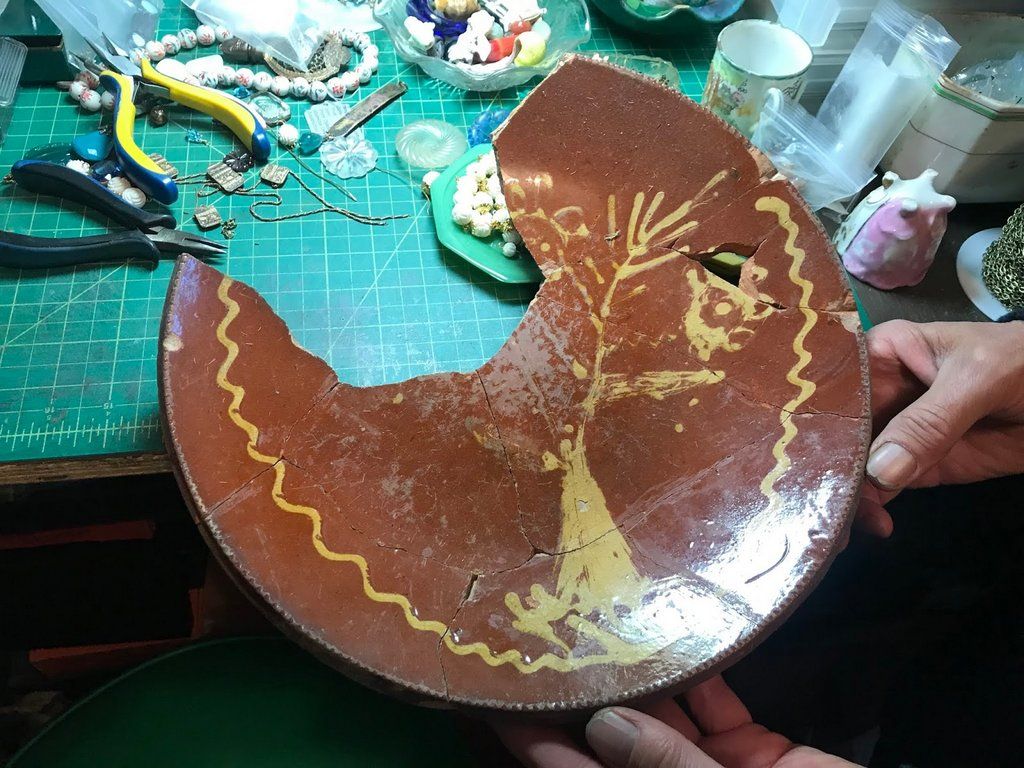Nineteenth century slip-decorated red earthenware plate recovered in New York City, possibly made in New Jersey. Courtesy: Maribelle Costes and Scott Jordan