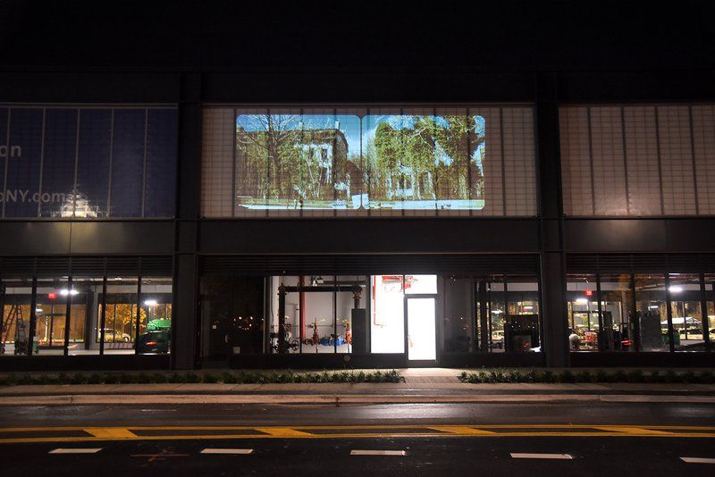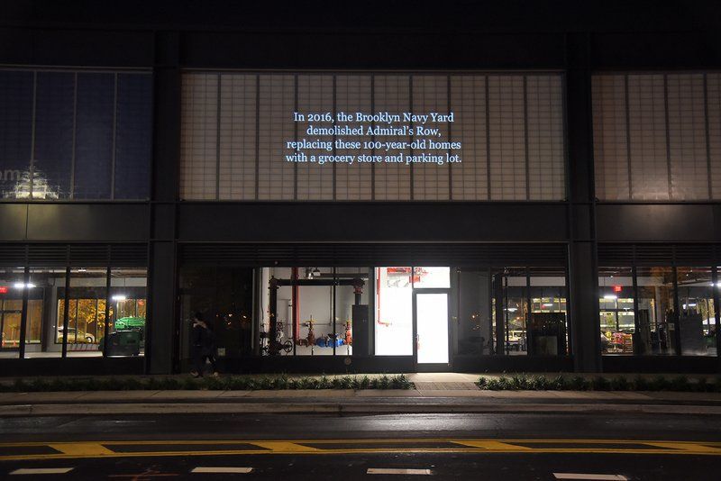 Photographer and documentary filmmakers Nathan Kensinger and Nathan Dorr have been tracking the changes on New York City’s waterfront for the past fifteen years, producing a unique body of visual work and collaborative art initiatives that seek to make the resident an active participant in the sweeping transformations along the city’s natural boundaries. Their latest work projects a “memorial” onto the new Wegman’s grocery store at the Brooklyn Navy Yard, which was constructed on a site where the Admiral’s Row mansions once stood. The piece, “Admiral’s Row 1864 – 2016” is a video installation that projected exterior and interior photographs and footage of the mansions taken by Kensigner and Dorr since 2008.