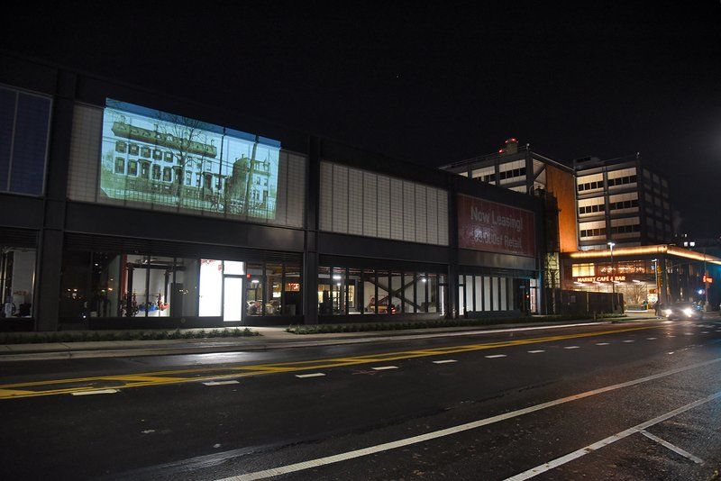 The second floor of Wegman’s became a perfect canvas for the art installation. Kensinger and Dorr told us, “We projected it on to the new buildings at the Brooklyn Navy Yard, exactly where the Row once stood, during the grand opening of Wegmans, as a sort of counter-narrative to all of the festivities and hype surrounding the supermarket. The installation asked viewers to stop and remember what was there before, and what was lost. A lot of people were happy to stop and talk about Admiral’s Row, which had been a part of that community for generations. The buildings may have been erased, but the community still remembers them.” The installation is part of an ongoing documentary project Kensinger and Dorr are working on that will eventually become a short film about the transformation of the landscape around Admiral’s Row.