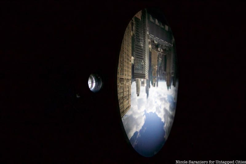 A camera obscura is a photographic device that dates back to ancient times and was a precursor to the modern day camera. Its latin name means “dark chamber.” The most basic camera obscura is a darkened room with a tiny hole for light to pass through. The light that comes through cast an upside-down image of the scene outside on the chamber’s wall. Camera obscuras rose in popularity in the 16th century and started to include lenses. Over time the technology was adapted for different uses and made into different forms including small pocket sized versions. The Skyscraper Camera Obscura at 101 Park Avenue takes the technology back to a large scale.