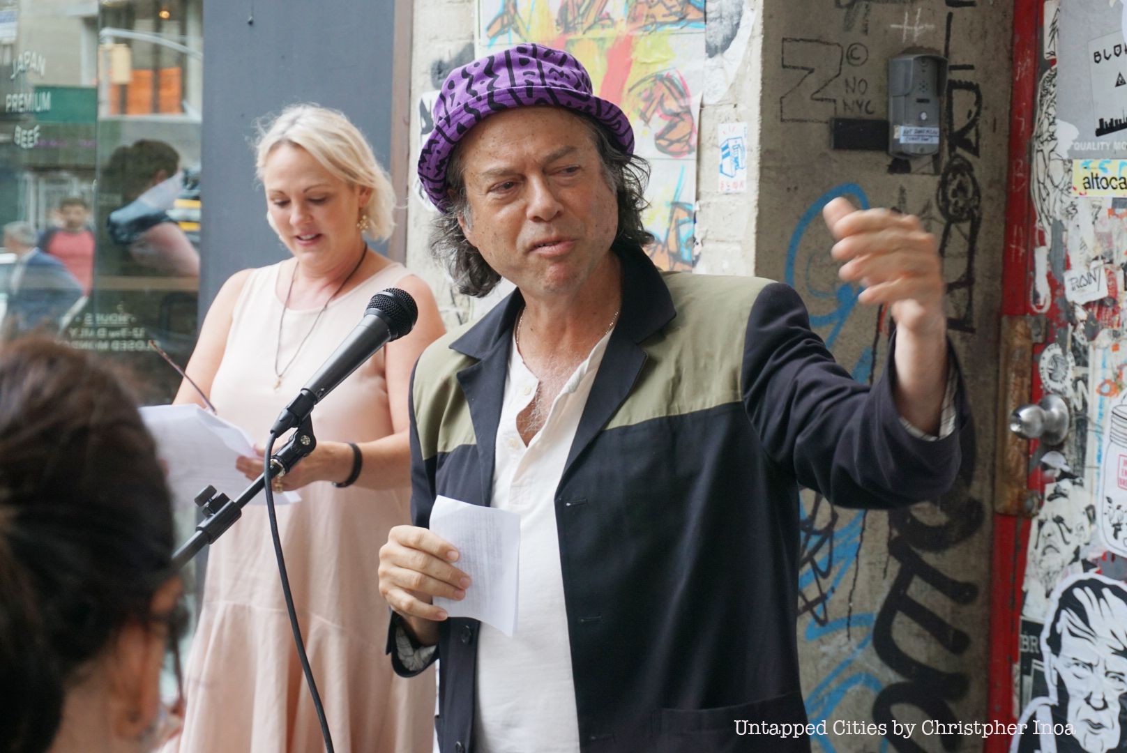 The short event featured speeches from Phil Hartman, owner of Two Boots Pizza and the Great Jones Cafe, where Basquiat tried to pay for a one dollar Rolling Rock with a $100 dollar bill. Other speakers included friends of Basquiat along with young students and poets who grew up idolizing him. At the end of the event, a spectator yelled out “this should be a landmark,” to which Lannyl Stephens, Director of Development and Special Events for the Greenwich Village Society for Historic Preservation said on the mic, “we’re trying.”
