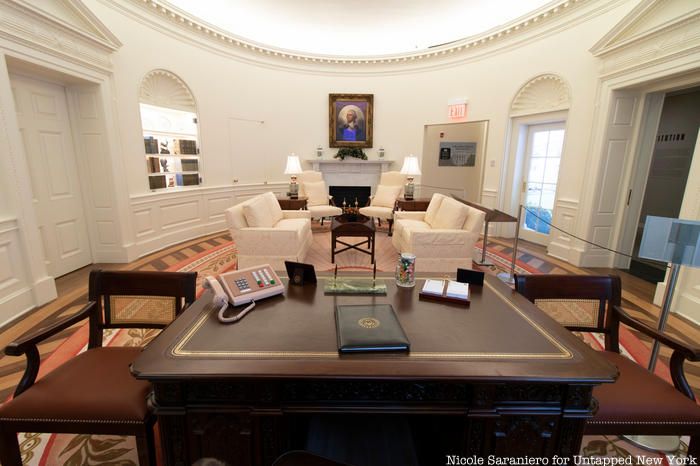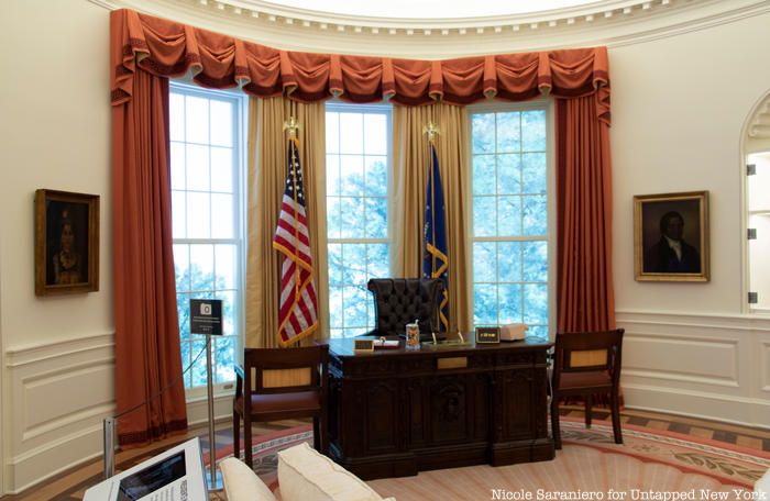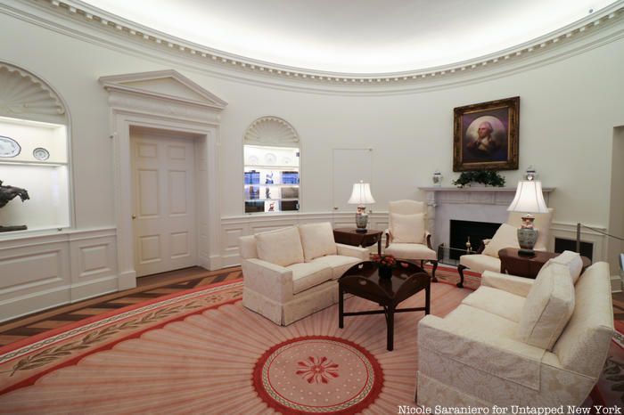 The new exhibition will be a permanent fixture of the museum’s fourth floor galleries. Serving as the centerpiece, a detailed re-creation of the White House Oval Office will give visitors the opportunity to sit, and take a photo, in a replica of the room where presidents have exercised their powers, duties, and responsibilities since 1909. Each president has slightly altered the room to fit his own tastes, but the version represented at the New-York Historical Society reflects the most widely considered classic interpretation. The room appears how it would have during the second term of President Ronald Regan.