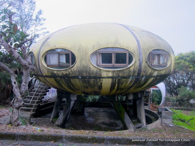 Although a sign at the entrance explicitly prohibits setting up house in any of the structures, a few of the Venturos look from the outside to be inhabited. One in particular, marked by an elaborate driftwood fence, appears to have fresh curtains, unbroken glass, and an operable motorboat parked in the yard. Perhaps one of the last prescribers to Suuronen’s vision of the future? It seems poignant that the last vestiges of that vision should be playing out here, in this obscure beach town on the other side of the world, surrounded by the rubble of that long-abandoned dream. Today, this obscure location on the northern coast of Taiwan may be the only place in the world where both Futuros and Venturos can be seen together in such considerable numbers.