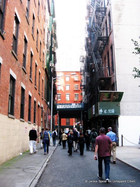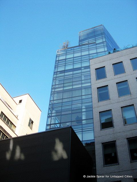 First stop we ventured down the shortest alley in Manhattan, York Street. The building pictured above was designed by Enrique Norton. He is extremely active in New York City and best known for designing Mercedes House, the apartment building on 10th avenue with the striking curving terraces. The objective for the design of this building was to insert a glass building within the middle of the pre-existing structures, so that it looks different from every side.