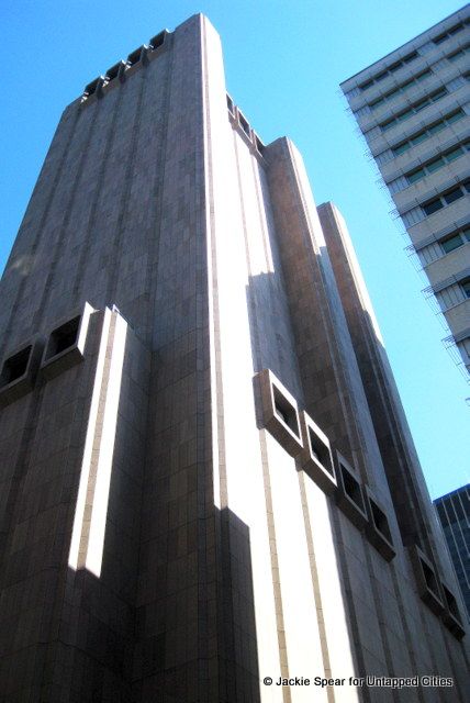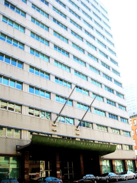 Juxtaposing the Art-Deco style of the State Fund building next door stands the masculine, monstrous and obtrusive second AT&T building. It is 50 stories high, completely faced with granite and is windowless in order to maintain the internal temperature for all of the telecommunication technology. It was built in the 1970s and the architect attempted to make it look like an abstract sculpture so as not to be so abrasive to the New York City neighborhood. Jokingly, Postal said this building is considered one of the Top 10 ugliest buildings by New Yorkers.