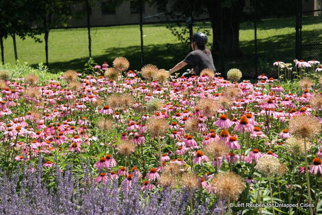 In order to encourage more people to discover the garden, free bi-weekly tours led by horticulturists SueAnn Tropico and Kevin Wiecks are being provided every other Thursday at 11 AM. Upcoming tour dates include July 16, July 30, and August 13. (On the alternate Thursdays, also at 11 AM, Randall’s Island Park Alliance is providing free tours of its Wildflower Meadows, another horticultural treasure on the island.)