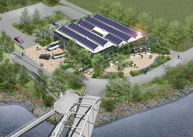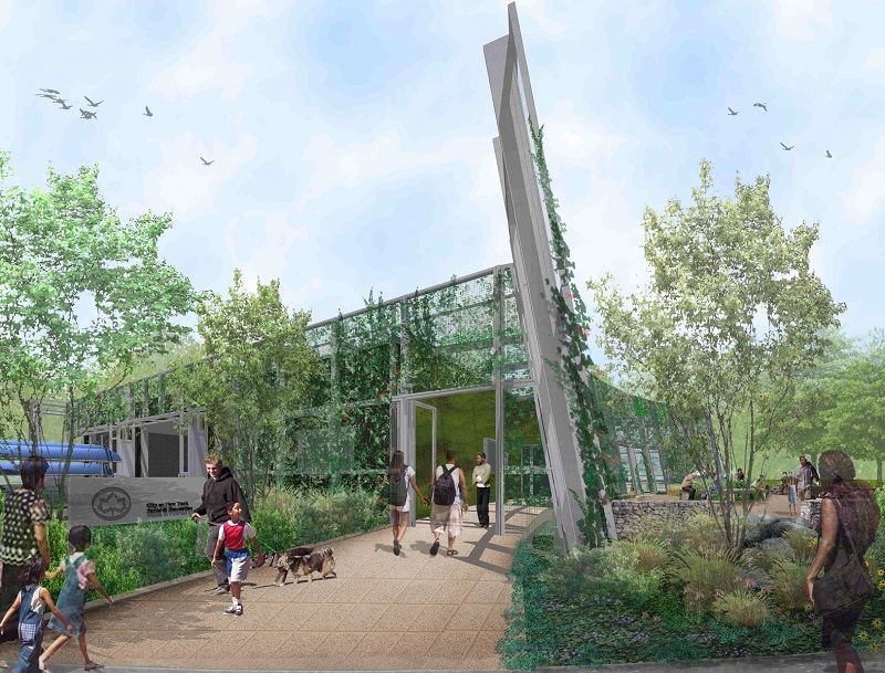 The Alliance’s new home embodies its environmental mission. Designed by architect Gregory Kiss, Bronx River House aims to be the greenest building in New York City. It will be a zero-net energy building, meaning it will produce at least as much electricity as it uses. It will achieve this through green building systems including a solar panel roof, living wall layered with vines and moss, and geothermal heat pump (heating and cooling system) using wells that extend 1,500 feet below-grade. The building will not emit any air pollutants as its green systems will enable it to operate without a fossil fuel powered boiler.