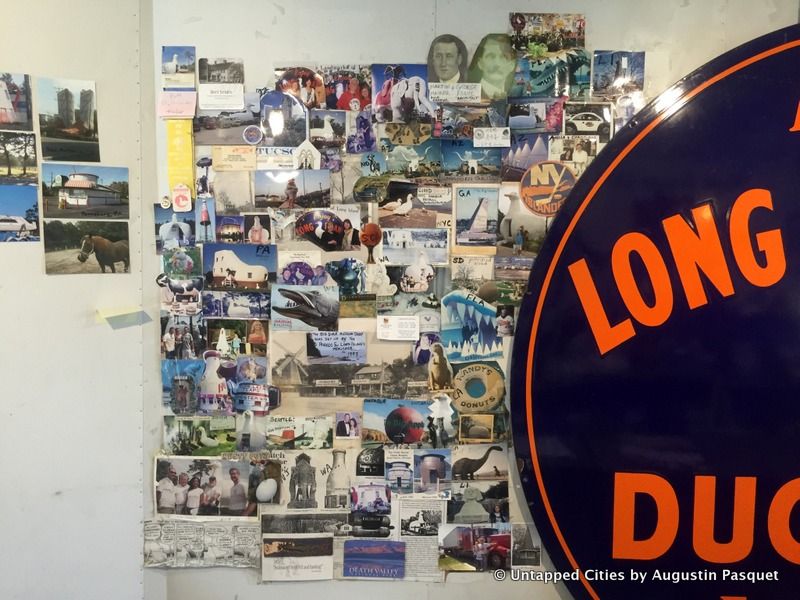 To give you a sense of size, the Big Duck measures 30 feet long, 20 feet high and 14 feet wide. You enter through a main door and can exit through a back door (under a wooden beam that warns, “Duck duck duck!”). Back in the day, the eyes were lit red using Model T tail lights.