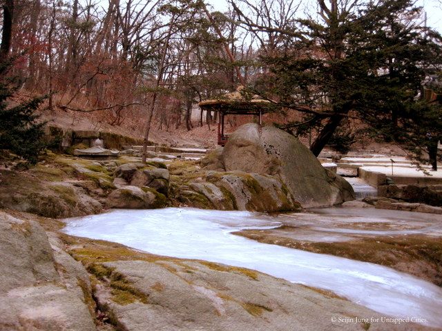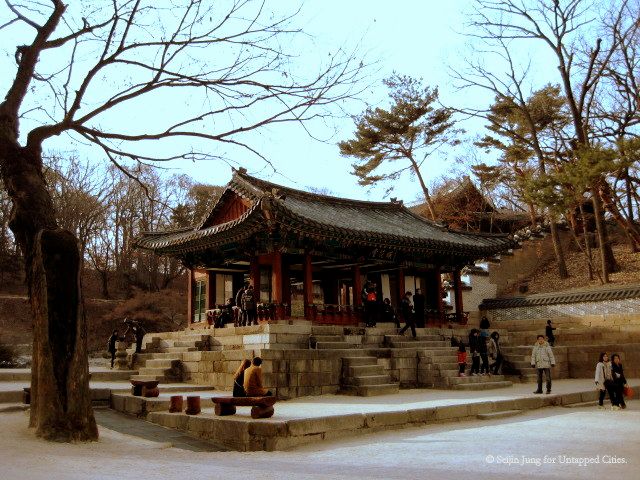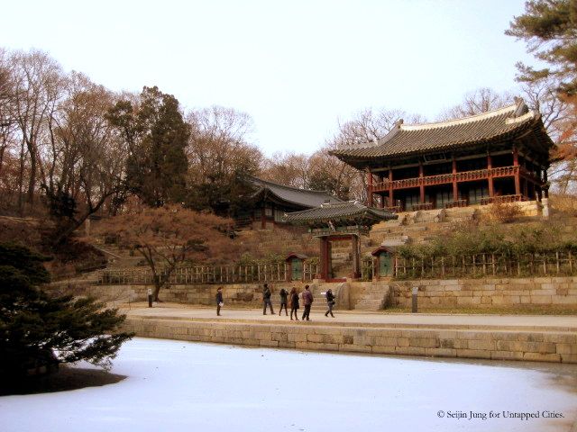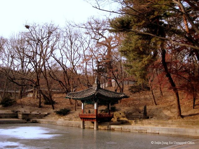 Deeper inside the palace rests a secret garden which once was loved by the kings and the princes of the dynasty. The garden is dubbed “Hoowon” or “Beewon,” meaning “rear garden” and “secret garden.” Amazingly, it stretches across a large area which accounts for more than 60% of the entire palace. What was filled with greener trees and blossoming flowers in springtime is now permeated with a peaceful silence, as if it fell into a deep winter’s slumber.