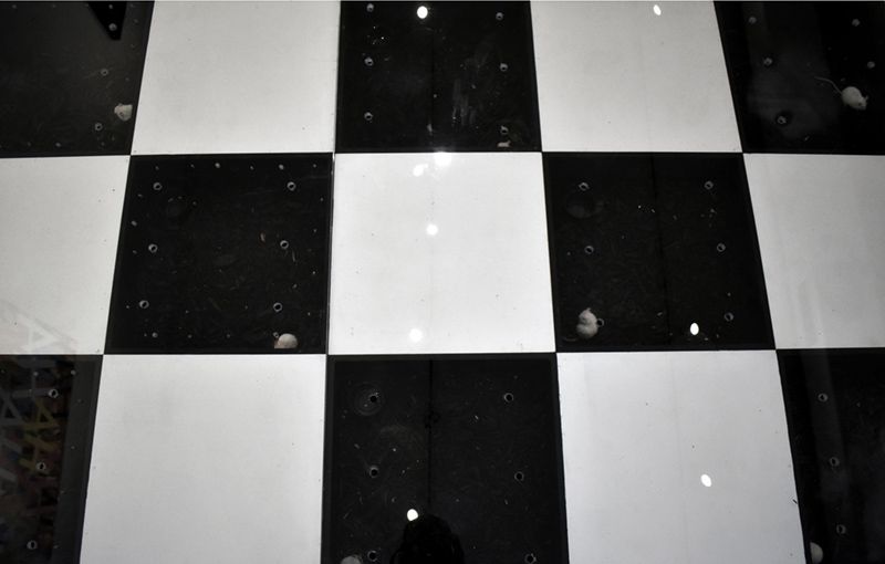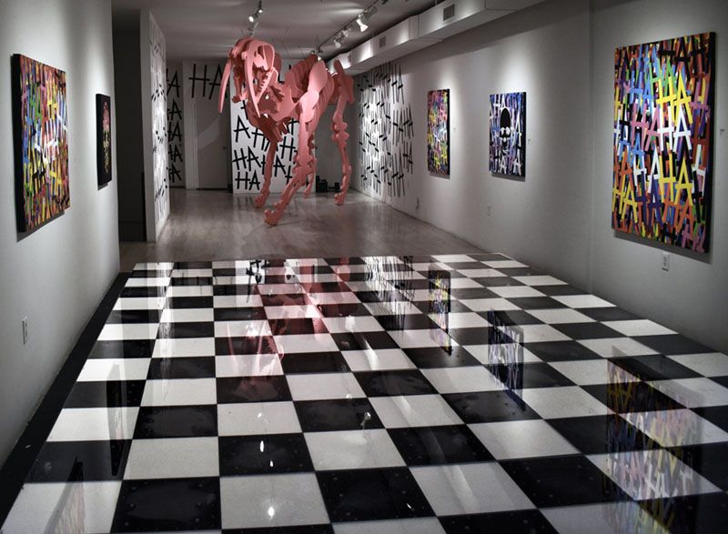 His solo, month-long exhibition introduces 12 new works of art — most notably, a 240-square-foot checkerboard floor with 140 sixteen-by-sixteen-inch squares, called “The Social Network.” But here’s the kicker: contained underneath the jet-black checkerboard tiles are “solitary modular habitats,” fitted with food, water and organic black hamster substrate. There’s enough in each compartment to sustain a single white mouse for a total of 70 live mice in the exhibit.