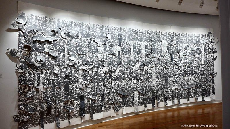 Part II, entitled Harlem and Home in the Global Context is installed on the second floor, and features work by painters, sculptors and installation artists, each expressing the concept of “Home” and how we recreate, imagine, and reconstruct cultural traditions. Photos of a few of the installations in Part II are shown below.