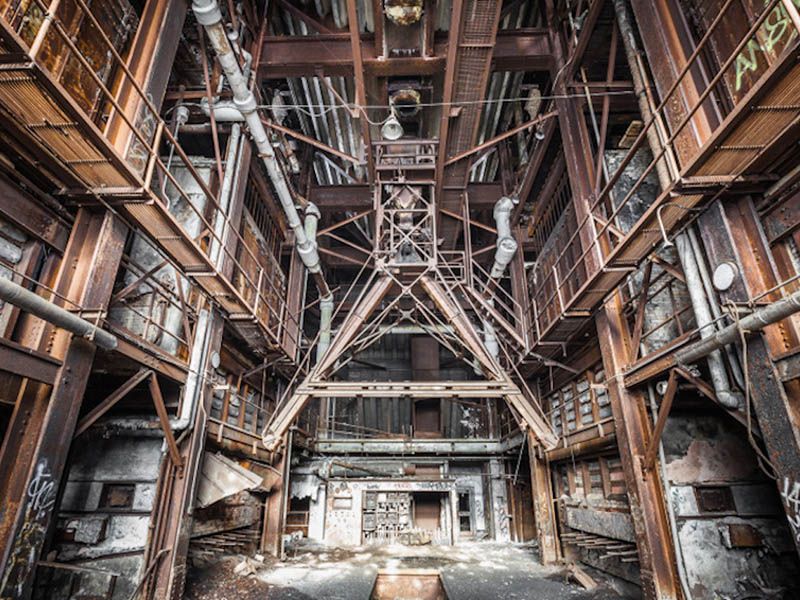 In an undisclosed location within Brooklyn lies the Jumping Jack Power Plant. Little is known about this towering abandoned building, which has become dilapidated over time and is now covered in layers of rust and dirt. The building’s first graffiti-ridden floor appears to have been a former chop shop, with a battered car now covered in spray paint residing there. This first floor also boasts many rickety staircases not suitable for climbing, but a rare passable staircase leads to the building’s main floor. According to Will Ellis of AbandonedNYC, paper records found inside the building indicate that the last time the power plant was in operation was in 1963. Ellis believes that the building was open to trespassers for a number of years before being sealed up in the ’80s or ’90s, preserving an image of a “grittier New York.”