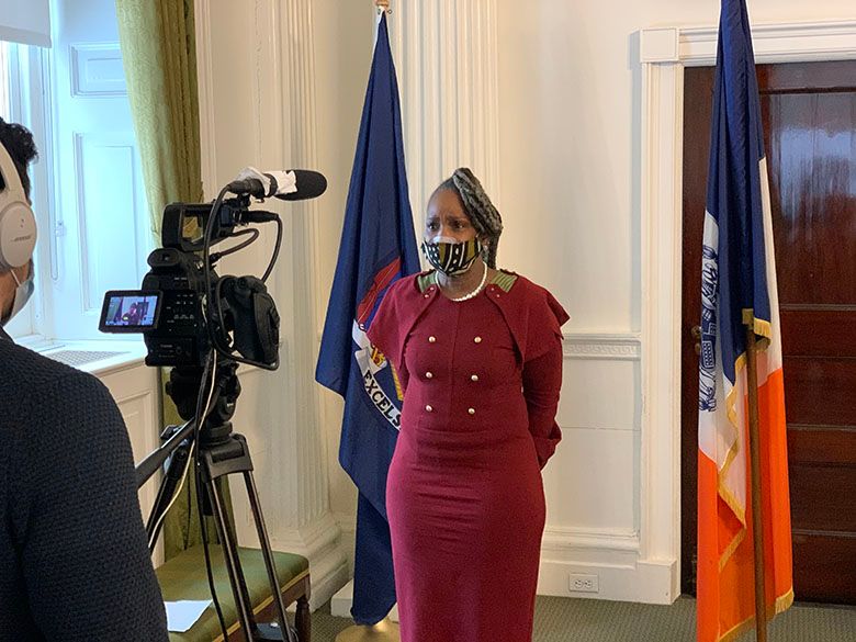 Shawné Lee, daughter of Mama Joy Chatel at the landmarking event at City Hall. Photo by Justin Cohen.