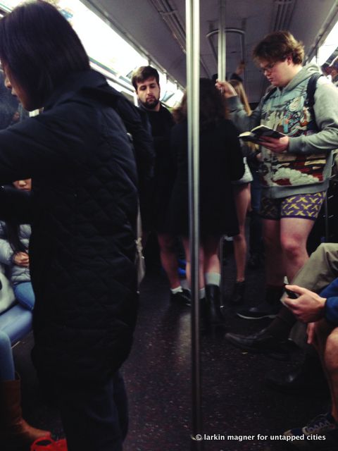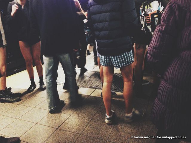 Sunday marked the 13th Annual No Pants Subway Ride in New York City. You may have caught the piece on Untapped Cities this morning by Luke Kingma, who discusses the heavy journalistic and photographer’s presence at the event. But if you were looking for photos of pantsless people, you may have been disappointed. To rectify that, we present this photographic look from the participant perspective at the Lower East Side meetup point.