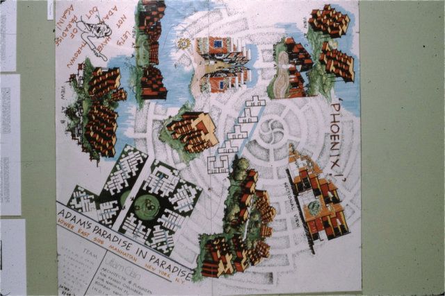 In January, 1986 NYCHA announced plans to demolish the garden to make way for a public housing project on the site, prompting a two-front community initiative: Storefront’s exhibition that invited architects from around the world to propose alternative designs that would integrate the garden into the Housing Authority’s approved plan, and a legal case against the development brought by the Volunteer Lawyers for the Arts.