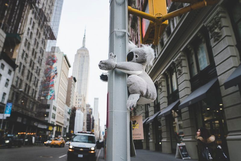 In just a few days, a bunch of adorable stuffed koalas have taken over the urban landscape of New York City, climbing lampposts, fences, trees, and subway entrances from Central Park, to the Brooklyn Bridge, to Union Square, Times Square, Herald Square, and more. In a city where pop-up and guerrilla installations have become corporate endeavors, the Koalas of NYC effort is for a great cause: raising money for the Australian wildfires.