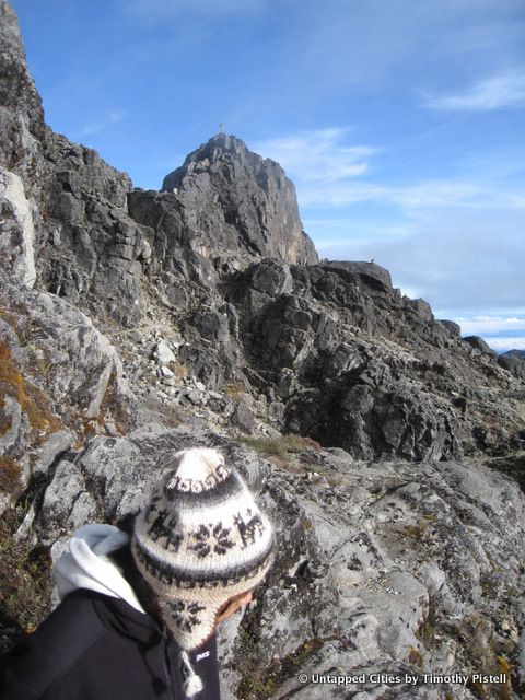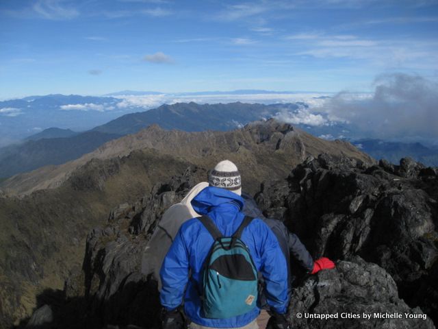 To get to the peak of Mt. Wilhelm you actually have to traverse through five other peaks. Lonely Planet describes it as a “walk,” but a large portion of the trek consists of loose rock, sheer cliff falloffs, rock faces and mud. You have to use guides since there is actually no trail. The climb starts at 2am with flashlights in order to reach the peak before the clouds roll in after sunrise. The climb is beautiful, as you witness the ecological changes that happen with altitude–rainforest transforms into grassland, waterfalls, culminating finally in rocky crags, lichen and ice.