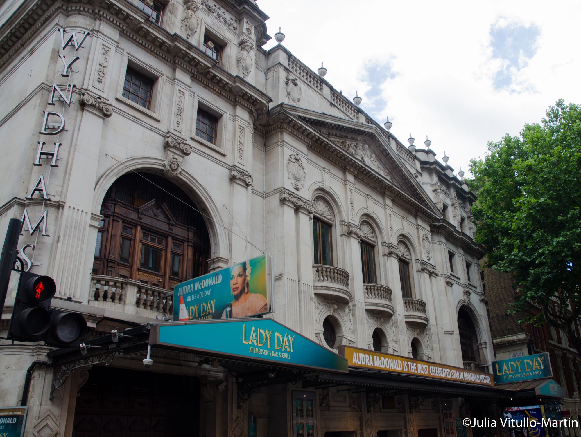 The Telegraph’s Dominic Cavendish calls the play “an utterly intoxicating evening with Billie Holiday,” and so it is. With 15 classic songs for McDonald’s lush voice, including “What a Little Moonlight Can Do,” “God Bless the Child,” and “Strange Fruit,” the Wyndham Theatre audiences have embraced her rapturously. As British journalist Tracey Logan said, recalling her on-air days with the BBC’s Women’s Hour, “Two topics always got the London ratings: Billie Holiday and chocolate.” McDonald has brought Holiday home to London.