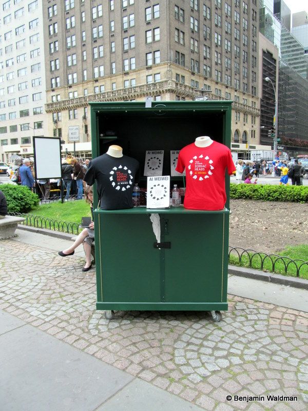 On April 3rd, Ai Weiwei was arrested while attempting to board a flight. A few days later his studio was destroyed by the Chinese authorities. As a result, the May 4 unveiling of his work occurred without the artist present and added a political aspect to this exhibit. His arrest has engendered a guerrilla street art campaign in China and has transformed the exhibition at the Pulitzer fountain into a reminder of cost some artists face for their activism.