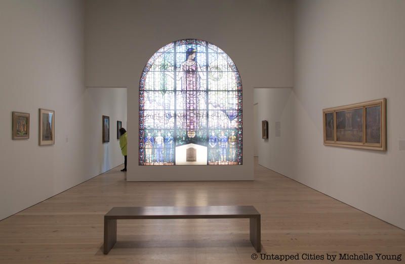 The diverse works included in the exhibit include a Corn Cob Chandelier, a lounge chair and ottoman, The Midnight Ride of Paul Revere, and the stunning Spring in Town. There are many rooms and pieces to explore, beyond American Gothic. As curator Barbara Haskell stated at the press preview, “Grant Wood’s work is very timely,” addressing “American identity, looking at the past to define some sense of how to deal with the present,” and while the show uses the conflicts of Wood’s era as a “springboard to the discussion of those questions, what we’ve discovered in mounting the show is the enduring power of his work goes beyond the sense of American identity” and addresses a more “underlying psychological dimension…It’s certainly more than a window onto the past..”
