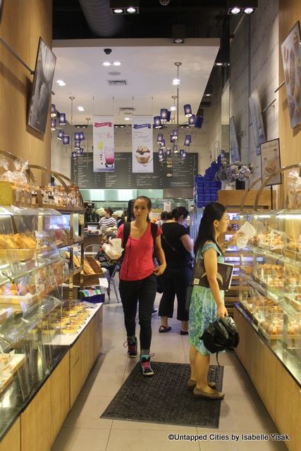 Now, when it comes to baked goods, I’m already half-way sold if I can catch a whiff of that bread-right-out-of-the-oven smell when I enter through a doorway, as was the case when I first came to this bakery. With regards to the menu, while they do offer sandwiches, Paris Baguette is better known for their bread, pastries, cakes, and coffee. A re-imagination of Parisian food by Koreans, Parisian Baguette acts as a reminder of South Korea where these stores are found in abundance. Yet, their recipes appeal to Americans for its West-East fusion. As for the staff, some of the food workers don the most stereotypical “Parisian” outfit: a black beret and a striped black and white “mime” shirt. C’est très amusant.