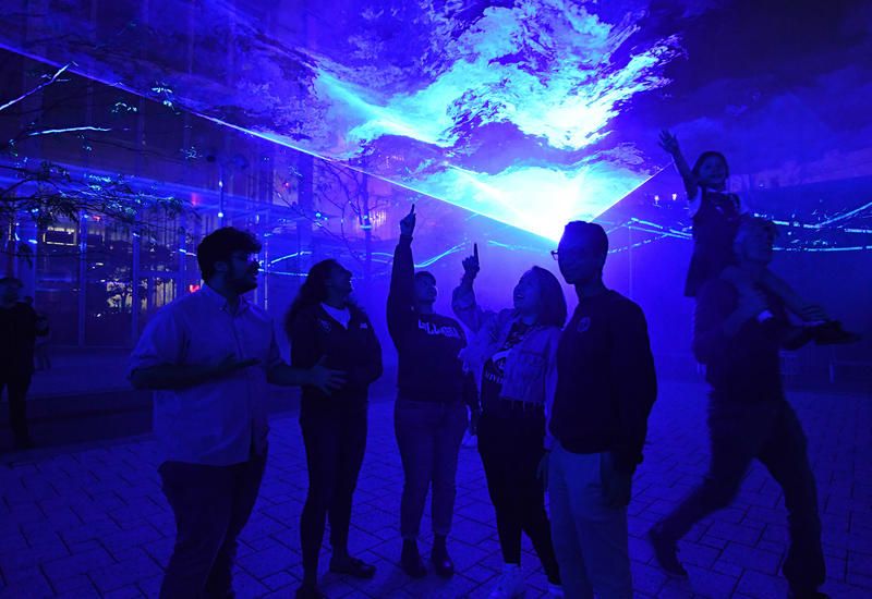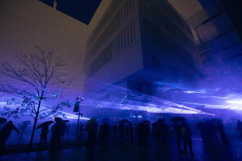 Floating above the Public Plaza at Columbia University Lenfest Center for the Arts for the next three nights, visitors will see an ethereal wave of blue lights that are reminiscent of the Northern Lights or the waves of the ocean. These mystical lights are Waterlicht, a mesmerizing light installation by Dutch artist Daan Roosegaarde and his innovative team at Studio Roosegaarde. The fascinating show will run through Thursday, October 24th in conjunction with the University’s Year of Water program.